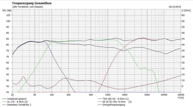 Den AL 170 mit Hochpass um ihn von den tieferen Frequenzen zu entlasten und Übergang zum KE 25 2-2,5khz