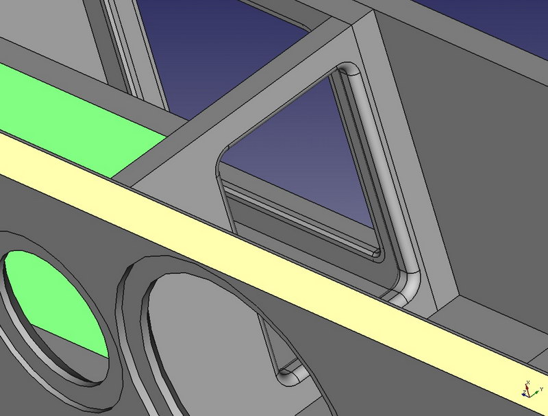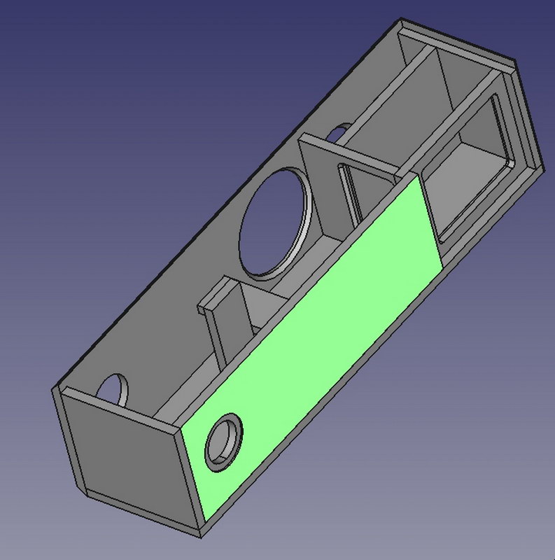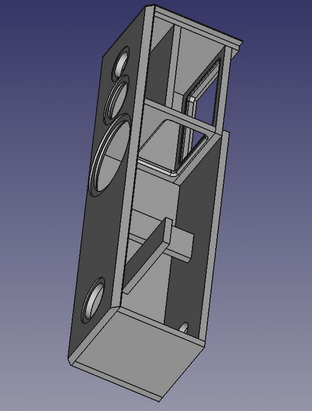 . Habe die mal in FreeCAD eingegeben um Eindrücke zu bekommen. Oben einen Rahmen für teilrausnehmbare Rückwand (insgesamt 1 mm Luft), damit die Weiche hinten an die Mitteltonkammer Rückwand passt, Mitteltonboden als Rahmen verlängert, 3 mm Deckeldopplung auf 16 mm Deckel zum abdecken der Stoßkanten.