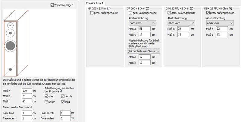 Verbaut ist eine DSM25, DSM50 und ein 20iger Conrad Alubass. Das ganz Probe gehört und irgendwie viel zu hell abgestimmt.