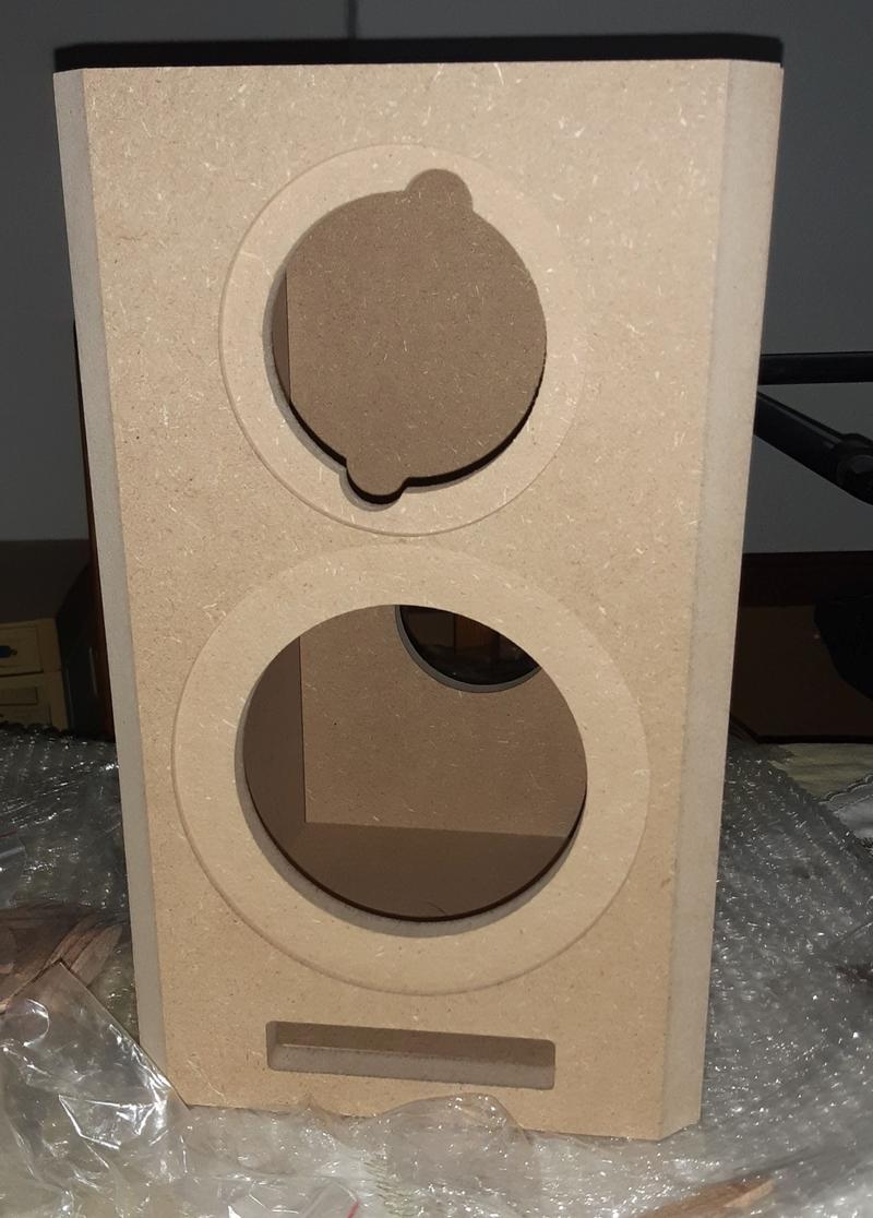 so, Leute es geht weiter. Die Teile sind nach 3 Wochen eingetrudelt. Ich habe die Gehäuse bestellt. Bei 36€/ Gehäuse habe ich da nicht lange überlegt. Ohne Oberfräse macht es wenig Sinn. Die Teile sind SEHR passgenau gearbeitet und alles für Flachdübel vorgesehen. Anbei ein par Bilder. Das Bild der kompletten Box zeigt sie nur gesteckt. Da ist noch nix verleimt. Die Teile für die Weichen kommen Heute. Da die Box klein ist und die Spulen bei räumlicher Nähe gern koppeln, werde ich je Box 2 Teilweichen bauen. Die können dann rechts und links an der Innenwand sitzen. Gruessle