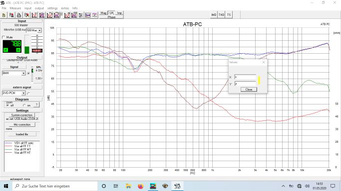 Meine Couplet MHT geht so … die Couplet Standbox WG von meiner Mutter hat mit der Weiche ( unten angehangen )den gradesten FG im Hörraum…. Wenn ich die Weiche aus der Couplet Standbox WG und den HT+MT in die Vox umbau … ist der FG der Vox auch wieder krumm ! ….