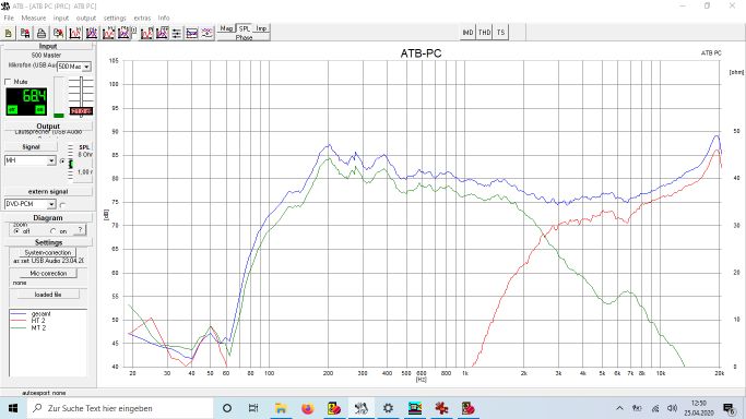 Bild drei zeigt die alte Weiche im Freien Feld gemessen ( leider war es nicht windstill und irgenwo fuhr noch ein Bauer mit seinem Trecker.. aber da ist wenigstens schonmal die Senke zwischen 2 und 4 KHz weg ! )