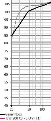 Ich habe mir auch 4 TIW200XS gekauft und mit 2 Stück in verschiedenen Gehäusen geschlossen und BR getestet, weil ich auf "kleine" SW gehofft hatte (zB a la Hobby HiFi Ladylike). Ehrlich? Vergiss es... Schau mal das Bild von walwal oben an: Bei 30Hz sind das 8db Anhebung und der Pegel ist immer noch 4db unter dem Pegel bei 100 Hz. Und Du willst nur LFE? Also nur unter 80 Hz... puh...