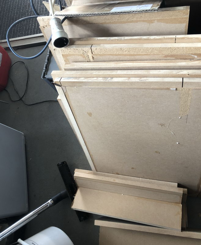 Mehrere kleine Stücke in 10 mm MDF, reicht für einen W130x Sub. Etwas weniger in 12 und 18 mm, die ungefähr 2. mal DIN A3. Dazu einiges an Spanplatte und ein ca 80 cm langes Stück Arbeitsplatte. Zum pressen von Deckeldopplungen an Gehäusen ist sowas zu gebrauchen.