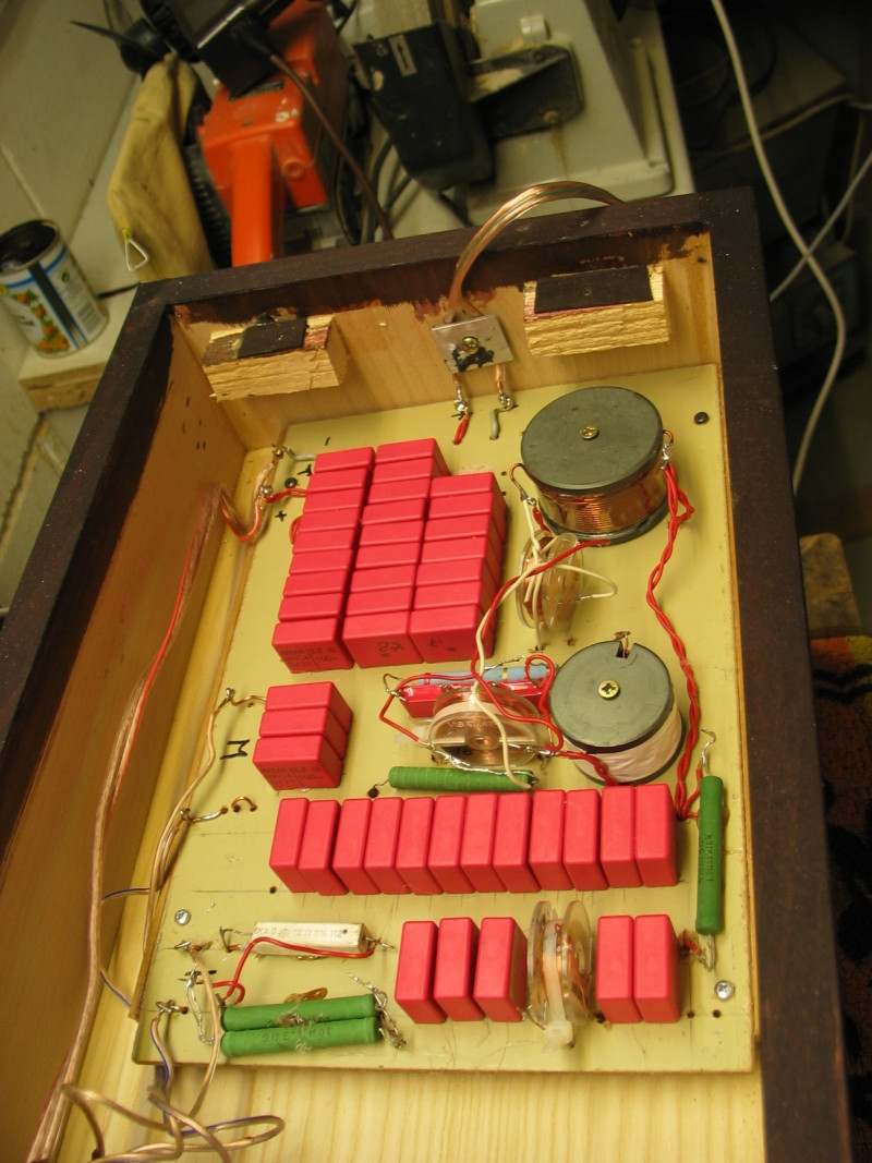 Also, die Weiche auf dem ersten Bild, das wären mir dann doch zu viele Kondensatoren. Ich benutze allerdings auch Elkos, wo es Sinn macht. Bei alten Weichen sollte man sie natürlich erneuern, oder eben, wie geschehen, auf Folie tauschen. Aber z.b. 330 uF Folie wäre mir zu heavy, zum Beispiel bei einer Impedanzlinearisierung.