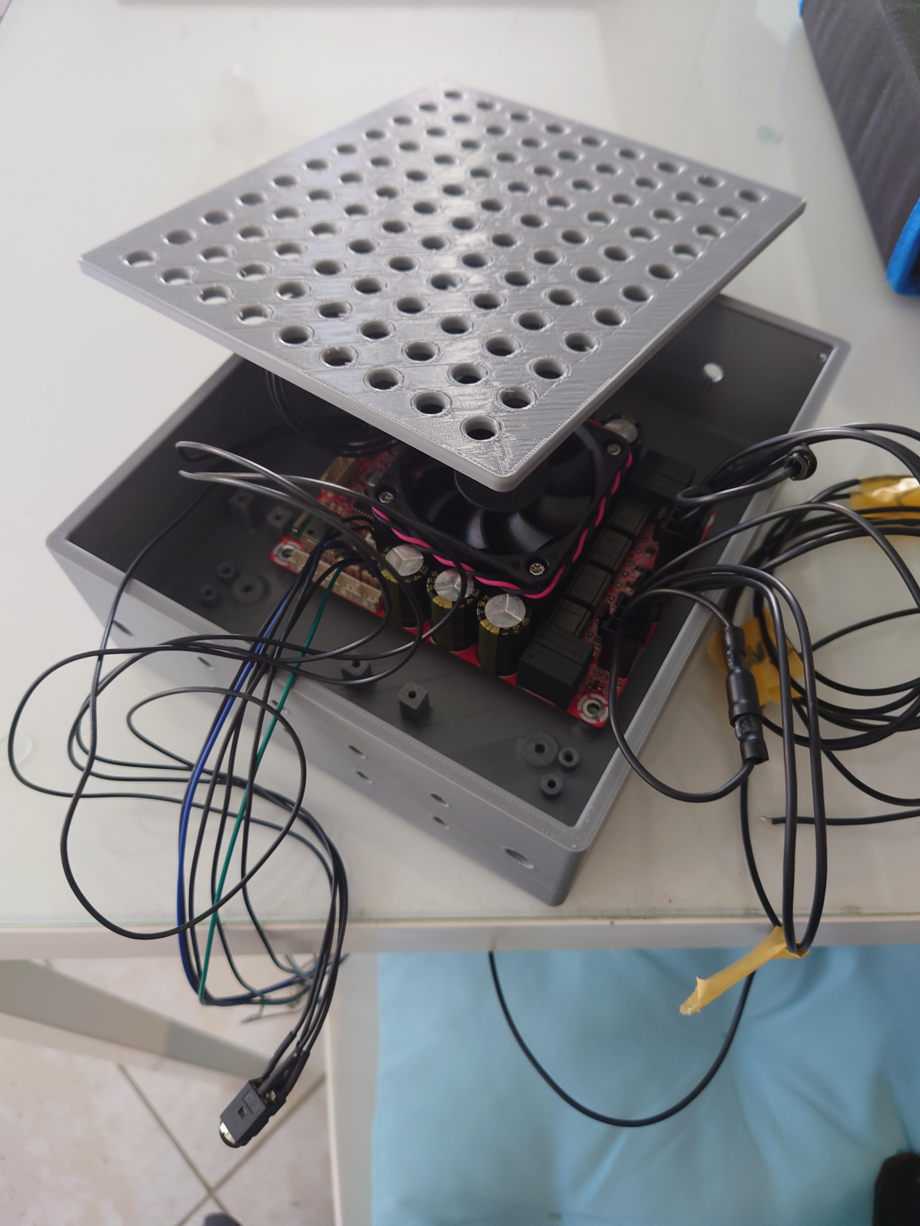 Mein Gehäuse ist in drei Richtungen völlig offen und ungedämmt, es gibt auch ettliche Mods für diese Schaltnetzteile u.a. auch Lüftergehäuse etc. werd da noch weiter optimieren aber mein primäres Ziel damit ist nicht das Wohnzimmer sondern kleinere Partys. Wenn mich der Hafer sticht bau ich noch nen Wohnzimmertaugliches Gehäuse, oder drucke ein kompaktes in das auch das Netzteil (oder ein besseres ohne Aktivkühlung) kann..