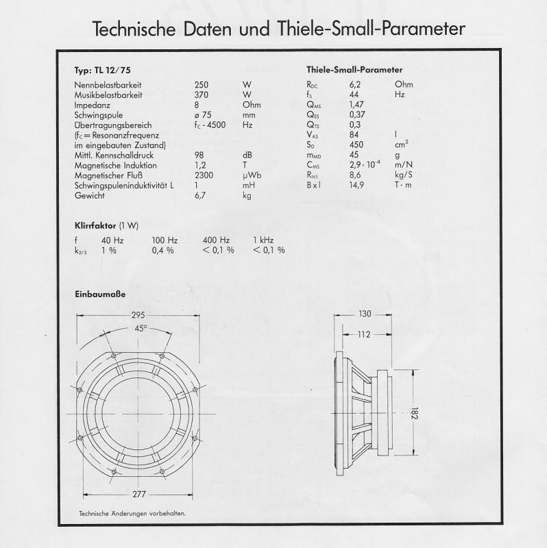 der TL12 hatte zwei Themen die bei vielen Umsetzungen nicht immer korrekt kompensiert wurden, ... zum einen haben die Boxen meist einen super schlanken Bass, (kleiner QTS) zwar super tief im super großen Gehäuse abgestimmt, aber unterhalb des Grundton richtig schnell und tief fallend, ... und dann gibt es noch eine zweite Schwäche, ... ein Tal bei 650 Hz, was nie kompensiert wurde und bei den Bässen im Grundton immer raushörbar war und ist, wenn nicht der Bereich weggeschnitten wird, ... bei der Urmonitor sollte diese Störung komplett durchkommen, da höher getrennt wird ...