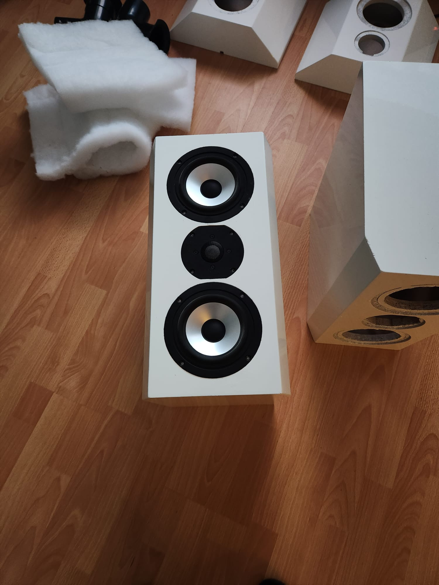 Ich habe noch 2 von den couplet davon nehme ich die Lautsprecher und dazu habe ich die Weichenteile + 2 Hochtöner gekauft, jetzt habe ich alle 4 Gehäuse zusammen.