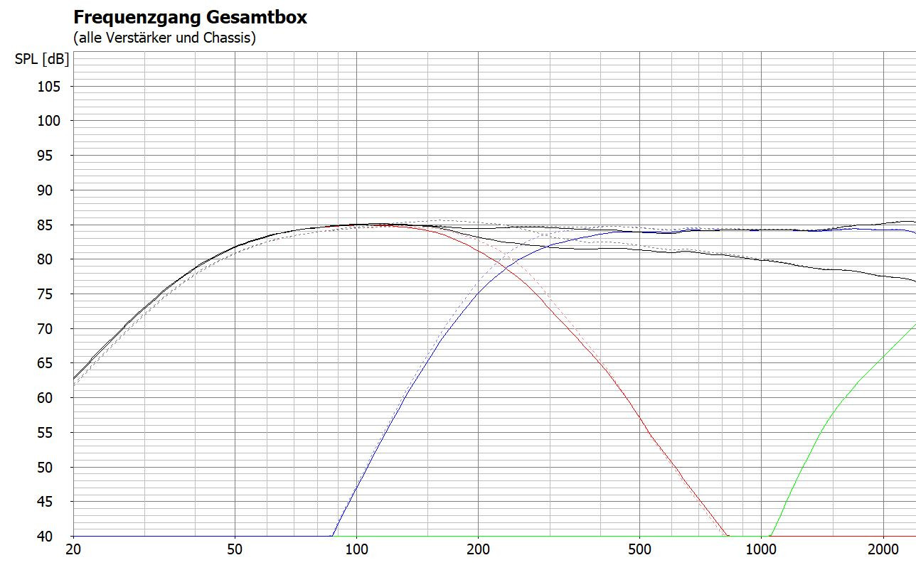 Ein Modul, Trennung auf 150 Hz stellen, Weiche wie gezeigt aufbauen. Mit dem Modul die TT der beiden Vox parallel antreiben. Phase so einstellen, dass es bei 150 Hz am lautesten ist, dann Pegel anpassen. Fertig. Das Modul kostet etwa 200 Euro und man spart insgesamt 10 Bauteile. Grob geschätzt 100 Euro. Wer mehr investieren will, schaltet ein Antimode vor das Submodul und hat einen sauberen, abgrundtiefen Bass.