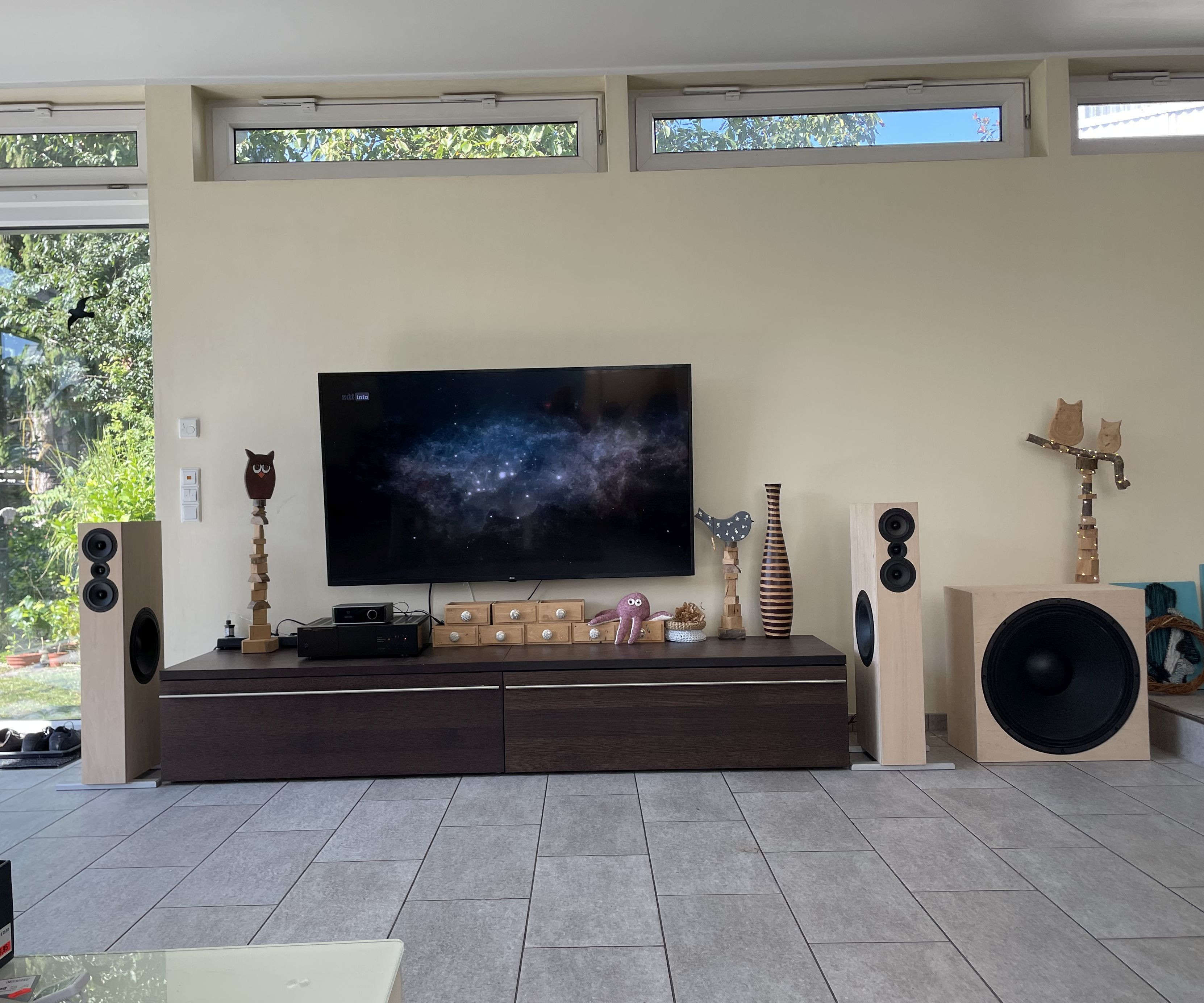 der rechte ist ein 21 Zoll, (so groß muss es nicht sein), also ab 12 Zoll in CB macht das richtig Spass. Eingemessen über DSP oder Antimode oder sowas ähnliches.