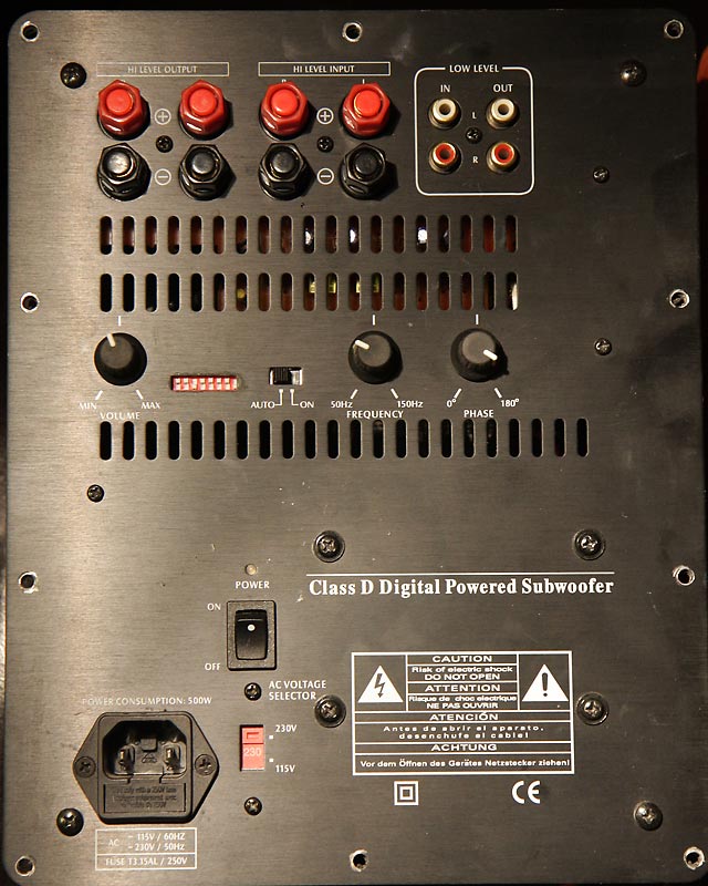 Dahinter finden Sie Wahlschalter, wo die Frequenz um 20, 25, 30, 35, 40 oder 45 Hz um +3 oder +6 dB angehoben werden kann und weitere Einstellungen vorgenommen werden können.