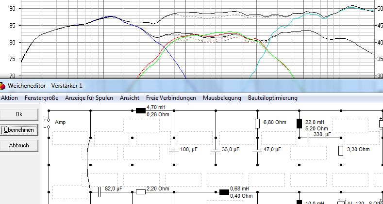 links 2,2 (.....=3,3), re 1,0 Ohm, da geht die Impedanz recht tief!!!