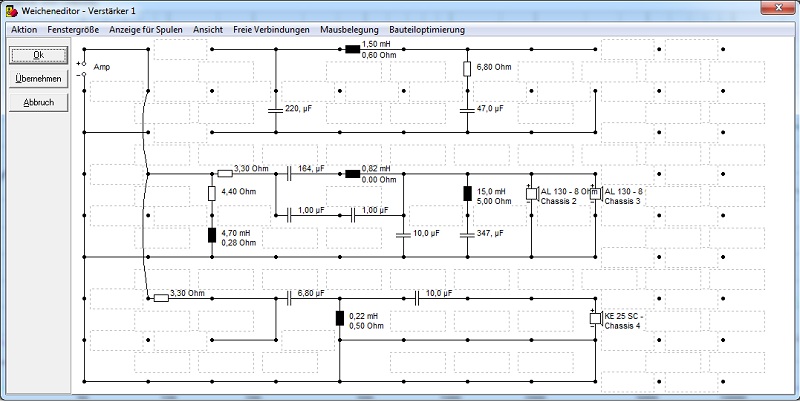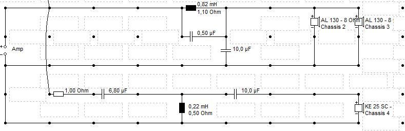 Ich weiss ja nicht ob das überhaupt möglich ist sprich impedanz am Verstärker. Die DSP einstellung ginge und der Weichenaufbau auch.. aber es ist eine Simulation und vllt sind meine Bauteile un dderen nordnung totaler quatsch.