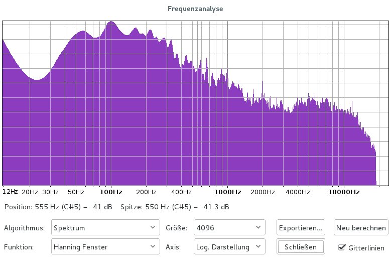ja, die db Aufteilung war nicht mit dabei bei Audacity, hätte ich mit der Maus Rasterung auslesen sollen, zu späht. Ich guck jetzt nicht nochmals nach.