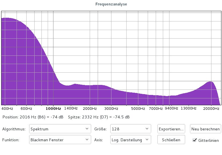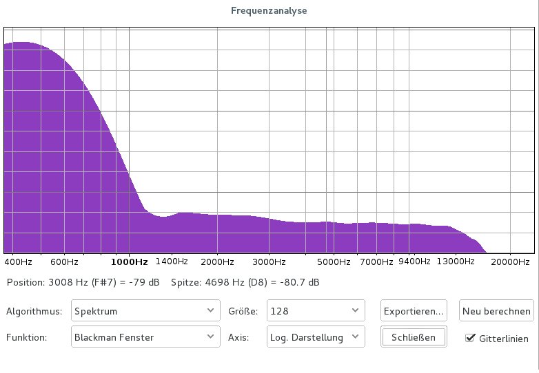 Mal die gleiche Minute aufgenommen, bei 2.8 bis 4kHz sieht man schon eine kleine Abschwächung beim Philips GP330 Abnehmer.