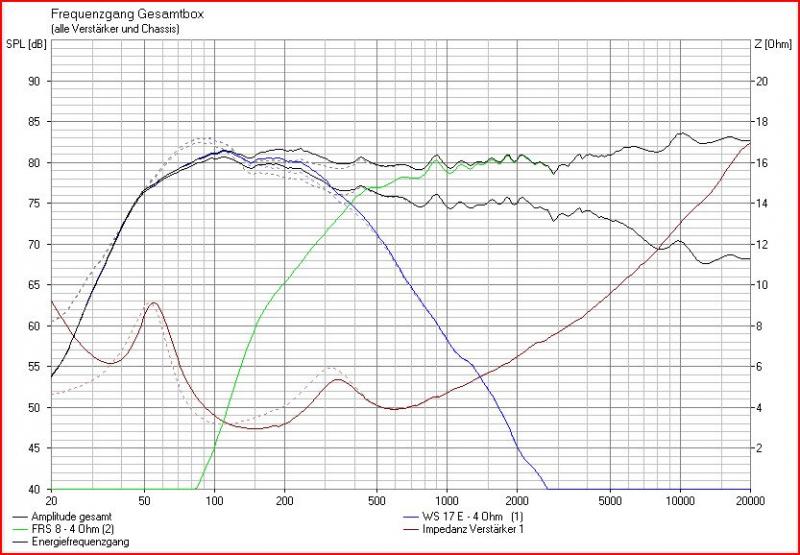 der hochton ist echt gut, relativ frisch abgestimmt, evtl. baue ich noch 0,4 Ohm vor dem FRS8 ein (erhöhung des 2,2Ohm-widerstandes) um den mittelton noch ein bisschen zurückzunehmen