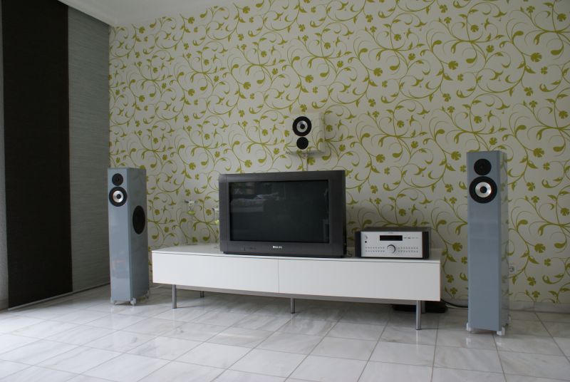 Das mit der Tapete hat echt was (nuja, ich persönlich würd meine Boxen nicht tarnen, aber wenns die Dame so will...