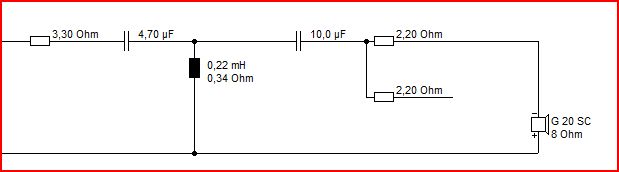 sonst könnte man die 1ohm vor dem tweeter auf 2,2 erhöhen .