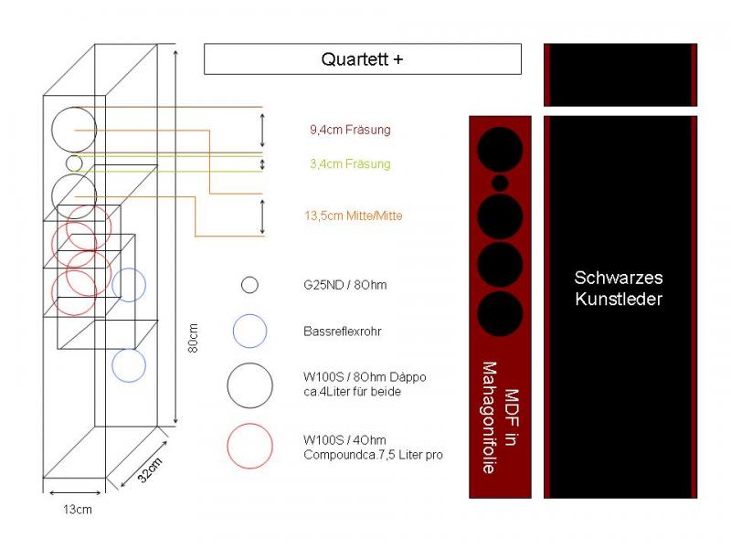 möchte ein neues Projekt realisieren das mir schon lange im Kopf rumschwirrt. Früher hätte ich gerne die Skyline mit 3*WS13BF und DSM25FFL gehabt, konnte sie mir nicht leisten, überhaupt sind Boxen mit schmalen Schallwänden sehr schön anzusehen, mit dem Vorteil der schönen räumlichen Abbildung der Aufnahme. Deshalb möchte ich hier eine kleine schnucklige Standbox bauen, die man notfalls auch untern Arm klemmen könnte um sie schnell in der Wohnung verstellen zu können. Trotzdem soll sie jedoch alles "können", Bass, saubere Mitten und gute Höhen, im Design (fast) der Skyline. Da jetzt die Quintet rausgekommen ist reizte es umso mehr die Art aufzugreifen und eine Eigenentwicklung zu machen, es gibt ja Boxsim.