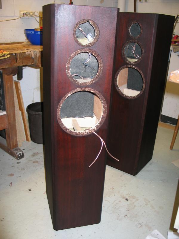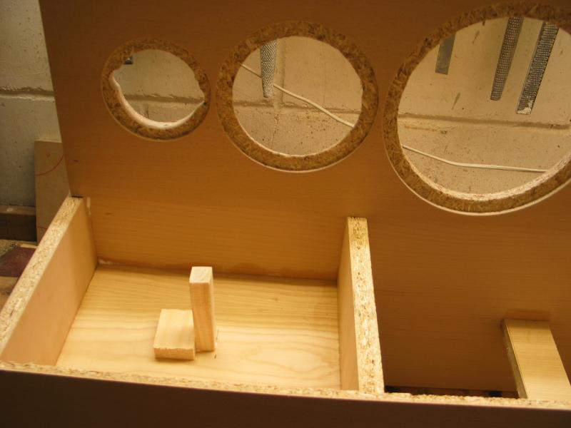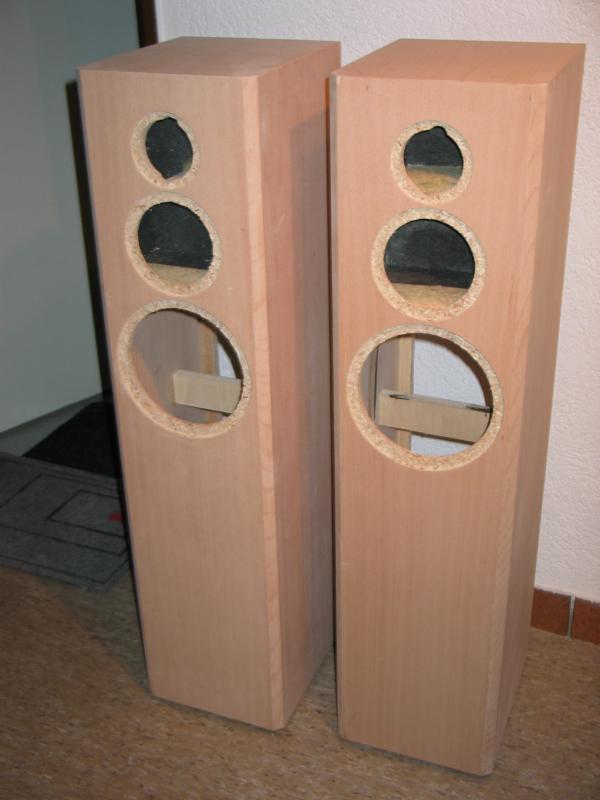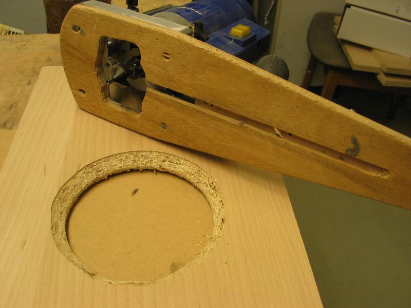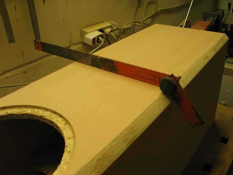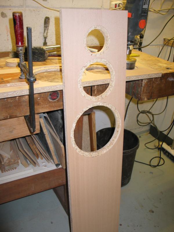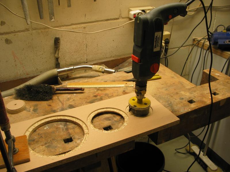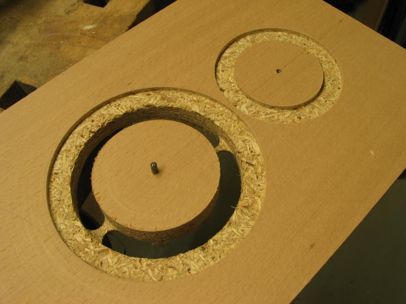 Die Schallwand anzeichnen und fräsen. Paarweise machen, das erspart Einstellungsarbeiten. Zuerst eine Probefräsung an Abfallmaterial machen. Details findet man auf der Homepage von We-Ha.