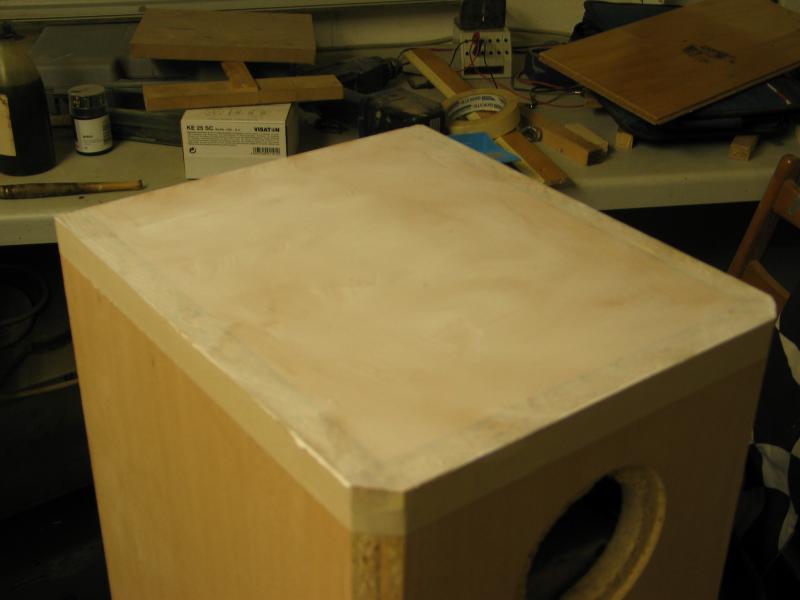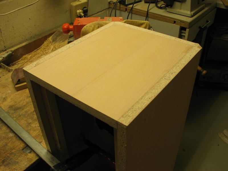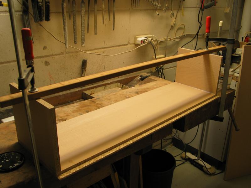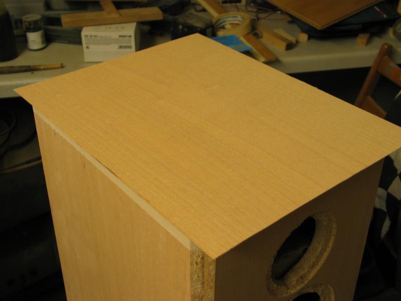 Bei meiner Technik müssen nur die Fasen vorne und die Oberseite selbst furniert werden.