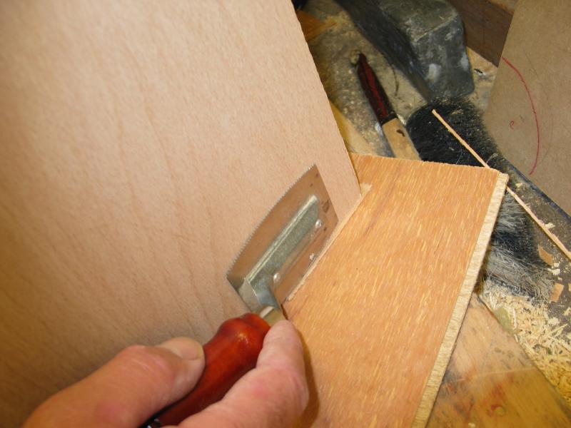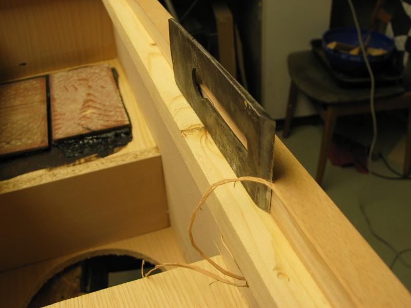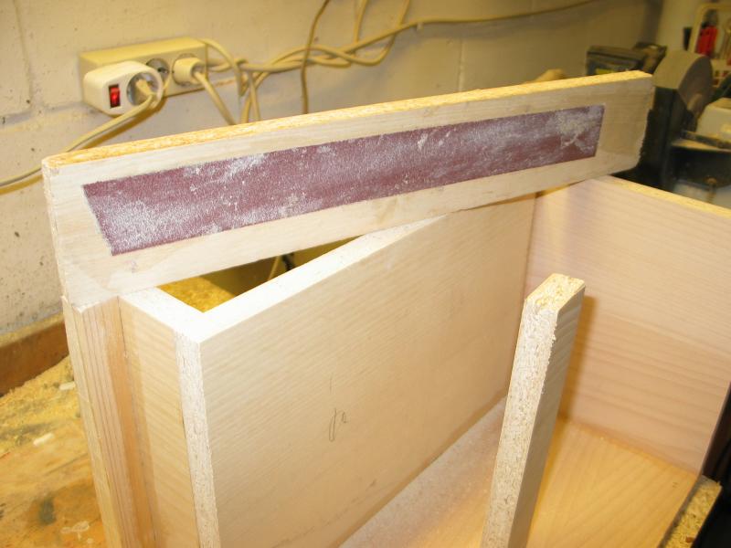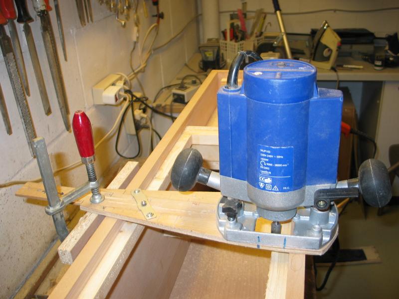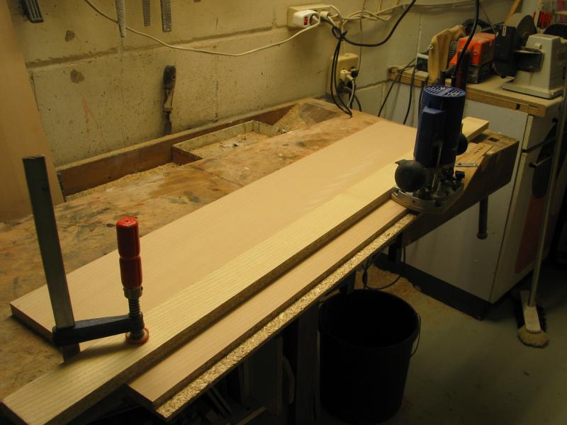 Die Fasen sollen nur 2 cm breit werden, daher muss ein Falz in die Seiten gefräst werden, 9 mm Dicke bleiben stehen, Breite 19 mm. Bei breiteren Fasen entfällt das fräsen eines Falzes.