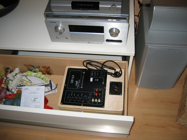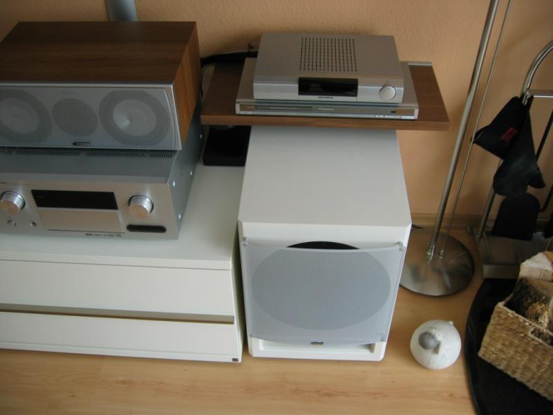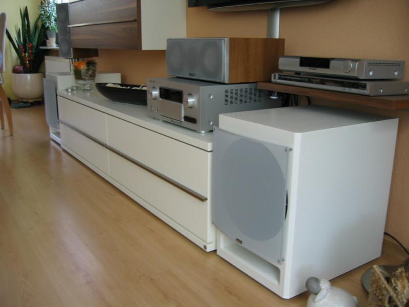 Ich selbst setze schon seit 5 Jahren 2 GF 250 ein und habe grundsätzlich bessere Erfahrung mit dem Einsatz von 2 Subwoofern gemacht. Deshalb habe ich auch meinem Kollegen den Einsatz von 2 Subs ans Herz gelegt. Nachdem er sich die GFs in meinem 25 qm Wohnzimmer angehört hatte, war ihm das noch nicht genug und er wollte gerne etwas Größeres haben, was dann aber auch für die nächsten Jahre reichen sollte. Zu erwähnen ist, dass sein Wohnzimmer knapp 45 qm hat, was den Einsatz von 2 TIWs nicht überdimensioniert erscheinen lässt.