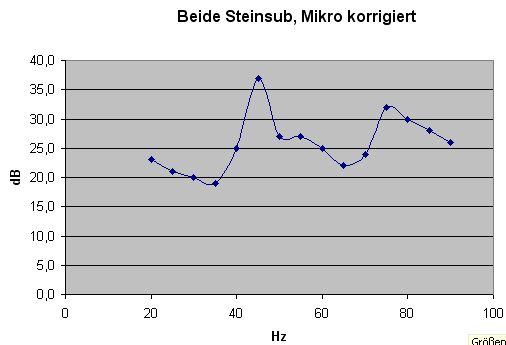 Ist schon ein Dilemma: der Steinsub links ist ok, aber ortbar. Mit dem rechten nicht ortbar, aber es buckelt bei 50 Hz grausam. Der alte Sub ist nicht ortbar, aber es fehlt laut Messung an Tiefstton.