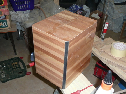 furniert worden.Bestückung fehlt noch da die Box derzeit mit Clou Hartöl vollendet werden
