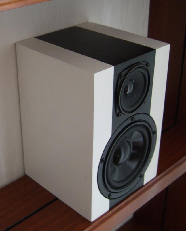 Der Tieftöner ist mit 12db und einem Hochpasskondensator beschaltet, während der FRS8 nur mit einem Vorwiderstand und einem Kondensator (MKT) beschaltet ist.
