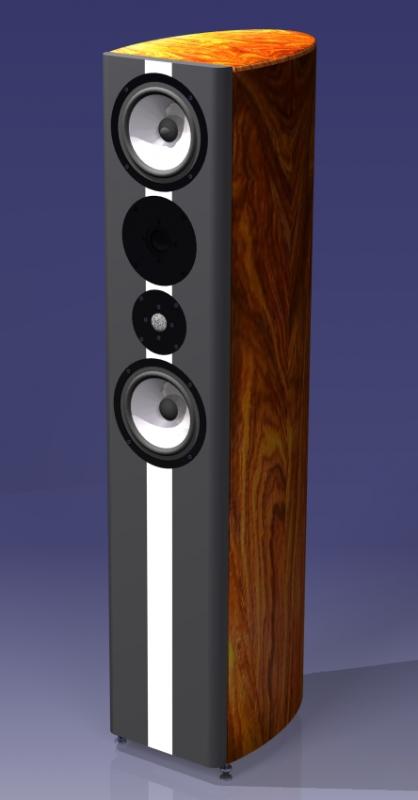 Vom Design her will ich einen Kontrast zum Holz des Gehäuses haben. Da es aus Kostengründen nicht wird mit den Schieferschallwänden, habe ich mich für Carbongewebe entschieden. Sehr gut gefällt mir auch, wenn in der Mitte der Schallwand noch ein Farbstreifen ist (glaub Silvio macht das so). Also so etwa soll das aussehen: