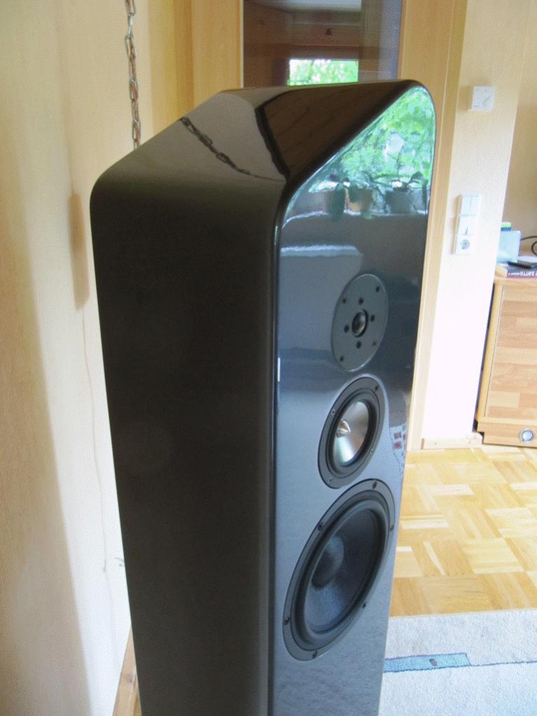 Da ich von Lautsprechern noch nicht so viel Ahnhung habe um selbst welche auszulegen war die Classic 200 GF die Grundlage für die LS. Sprich in der neuen Form steckt die GF drin, so dass der LS an sich nicht verändert wurde. Auf die Idee mit der schrägen Form bin ich gekommen, als ich mir die Aufgabe gestellt habe dass auf meine LS keine Blumen zu stehen haben ;-) Und siehe da funktioniert einwandfrei....