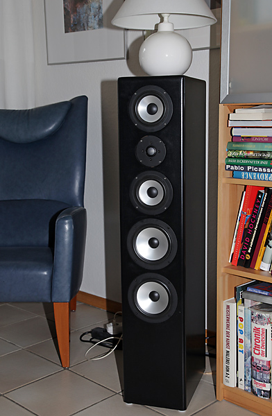 Der Höreindruck der Konstruktion war ganz ausgezeichnet. Der leicht bedeckte (oft schönende) Klang der Symphonie war völlig verschwunden, trotzdem war der MT-/HT-Bereich in keinster Weise aggressiv, auch nicht bei obertonreicher Klassikmusik. Erstaunlich gut war auch die Tieftonwiedergabe und passte bruchlos zu den höheren Frequenzen. Das untere und obere TT-Gehäuse haben je ein 21 L Volumen. Beide Gehäuse in CB !