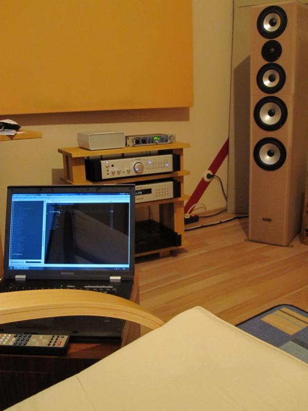Ich habe ein Hifi-Rack gebaut, um die Geräte richtig zu positionieren und verkabeln zu können (siehe Foto). Ich bin sicher, das ich den Geräten auch in Sachen Wärme einen Gefallen tue. Außerdem steht das Rack absolut ruhig, ich habe gestaunt, das selbst bei größten Lautstärken keine richtig spürbare Vibration auf das Rack übertragen wird. Dazu bin ich so günstig an Sommer Cable Spirit XXL gekommen, das ich zuschlagen musste. Stolz hab ich gestern Abend neue Kabel gelötet, mit Neutrik Steckern. Dann habe ich auch neues Lautsprecherkabel gekauft, Sommer Cable Magellan (danke nochmal an frogger
