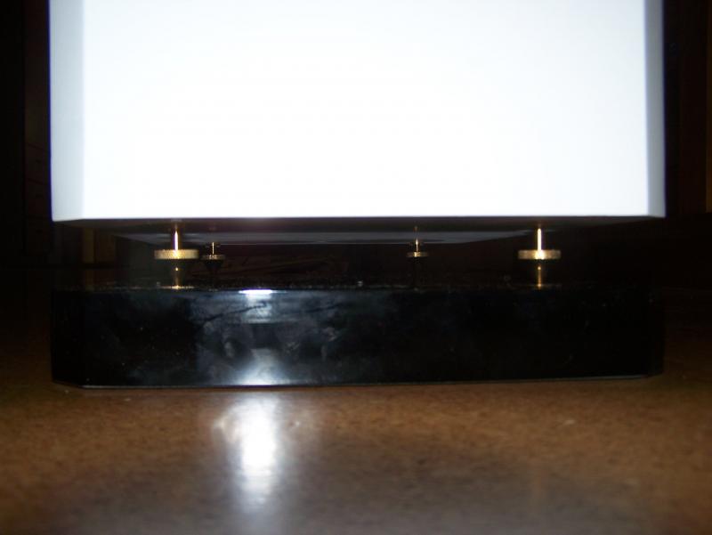 Bei den Standfüßen hab ich mich an die Grundflächen der einzelnen Lautsprecher gehalten, das ganze dann gute 40mm stark. Bei den hinteren Säulen der Couplet´s sind 20mm Edelstahlplatten mit eingebracht, um ein wenig Gewicht in die Füße zu bekommen.... die Verkleidung wieder aus MDF. Die vorderen mit original Spikes, schade das es diese leider nicht in Edelstahl gibt, würd sie sofort tauschen.....