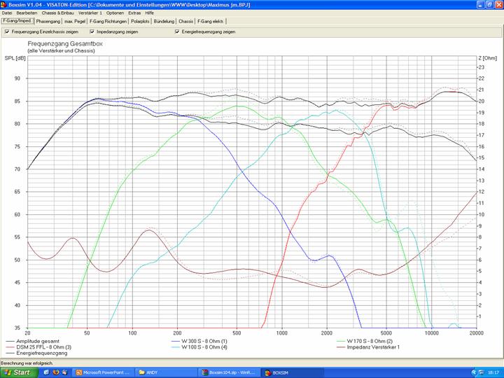 Optisch wird die Front schwarz, das Mittelhochtonmontagebrett und der Rest der LS in Mahagonifolie, die Zierringe der Chassis werden Gold lackiert um eine dezente Veredelung des Gesamteindrucks des LS zu bekommen. Morgen gibt’s erste Bilder, die Simu sobald der Rechner wieder Einsatzfähig ist.