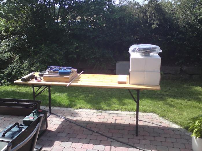 Anfangs noch draußen, später wegen Schlechtwetter leider in der Garage...
