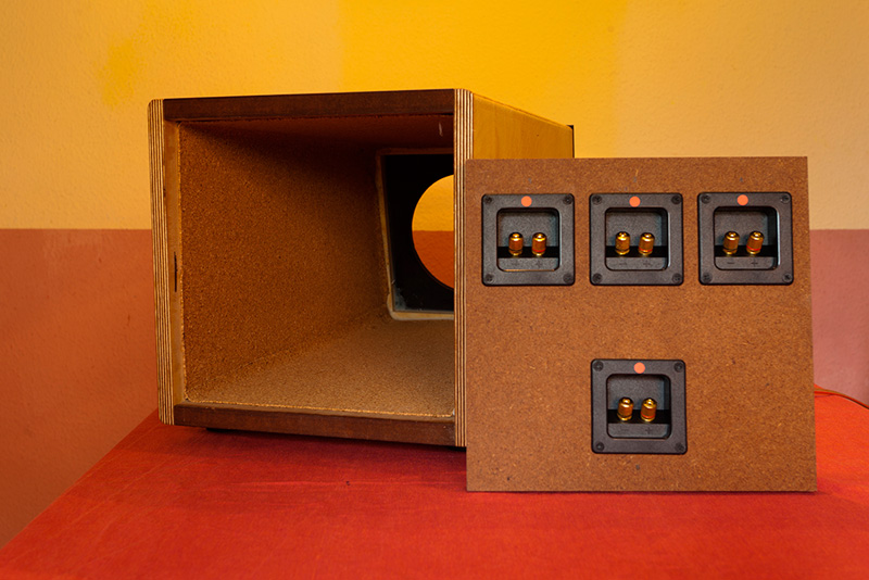 Die uneter Box hatte 8 "Füsse", das wurde aber geändert da ich die ganze Pentaton höher gesetzt habe, damit der B 200 in Hörhöhe ist.