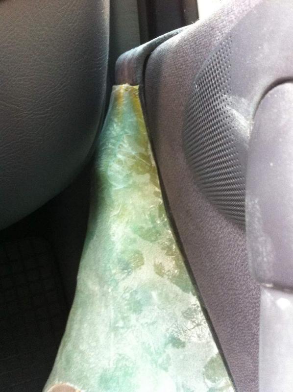 Beim zweiten Gehäuse (das von der Fahrerseite natürlich, dass dann ständig von mir aus nächster Nähe zu sehen ist...) hat irgendwie der Kleber nicht kleben wollen. Ich war dann nach zwei Stunden so frustriert, dass ich wußte, wenn ich jetzt aufhöre, wird es sehr lange dauern, bis ich noch mal dran gehe. Deshalb wollte ich es unbedingt fertig machen, egal wie. Und da außer Heißkleber kein anderer Kleber mehr griffbereit war, musste dieser herhalten. Und das ausgerechnet an den Schnittkanten. Ich freue mich schon auf nächsten Sommer, wenn diese dann alle wieder aufgehen.
