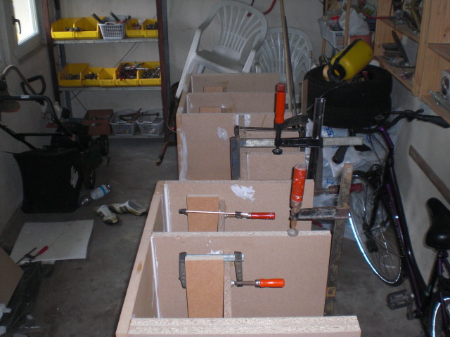 Schallwand 50 mm MDF; Innenteile in 25mm Spanplatte +zusätzliche Verstrebung je Gehäuse.