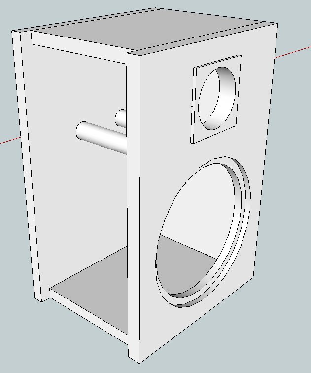 wird die Box breit (26cm) flach (18cm) und nicht so hoch (38 cm) . das innenvolumen beträgt mickrige ~13 liter, was aber für eine wiedergabe bis knapp 100hz ausreicht