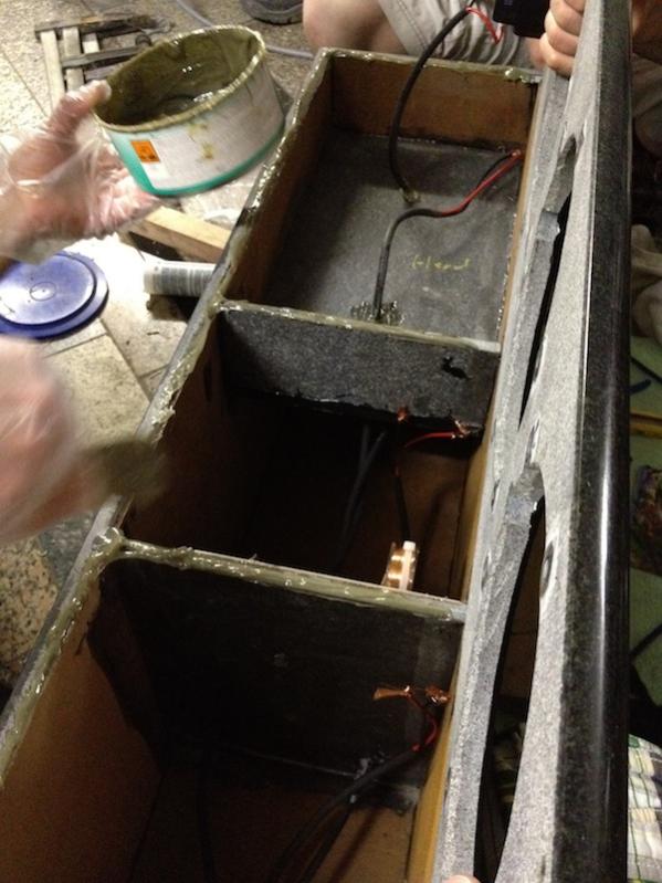 Wenn das Bassabteil etwas weniger als eine Sekunde nachschwingt, wäre das eine Katastrofe. Versteifungen helfen am besten. Z.B. Holzstreben zwischen gegenüberliegenden Wänden, die in Bitumen "lagern".