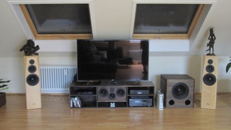 Der Klang ist perfekt, wie schon von mir beschrieben. Theoretisch müsste der Center höher, dann aber auch der TV, das Dach usw. Oder einen kleineren TV. Der jetzige ist schon mächtig. Unter den gegebenen Umständen fällt mir keine bessere Lösung ein.