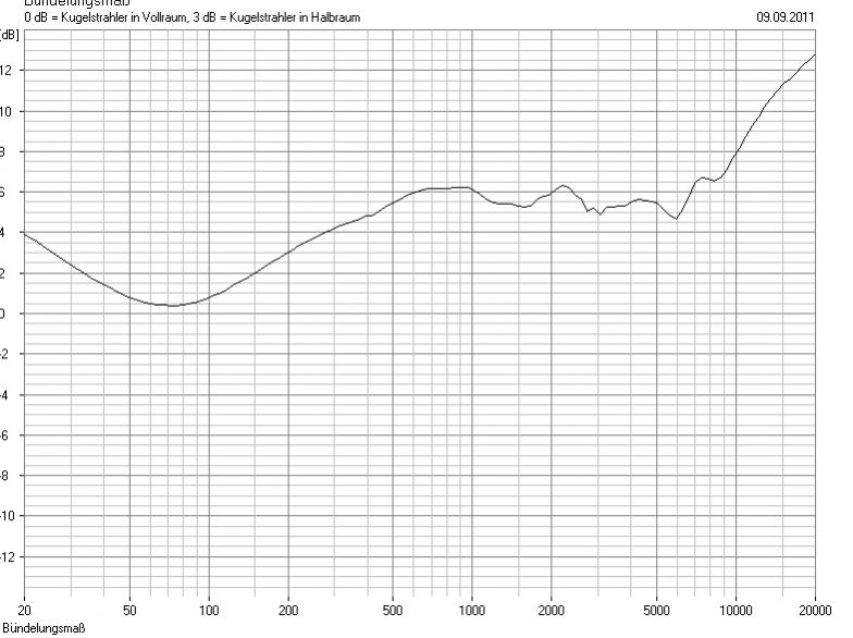Die Bijou würde ich nicht als halb in die Wand eingebaut ansehen. Ich denke, die Sonja hat die breitere Schallwand. Außerdem sind die Fasen eher flach, die werden da noch ein wenig mit reinspielen. Die Katja-Schallwand ist noch breiter, da ist auch das Bündelungsmaß über einen größeren Bereich ungefähr konstant. Das entspricht der Erfahrung, die ich mit Boxsim gemacht hab: Chassis mittig in die Schallwand (v.o.n.u. TMT, MT, HT, TT, ähnlich Compact) und Schallwand schrittweise verbreitern, dann wird die Bündelung ausgeglichener.