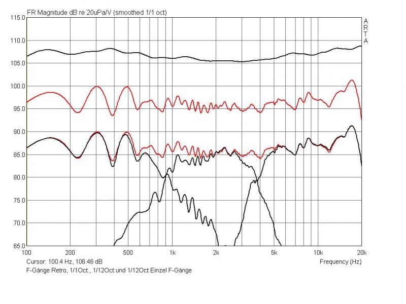 vor einiger Zeit hatte ich versucht neue Chassis auf alt zu trimmen, W170S oder W200S im eckigen Korb, aber es fehlte immer am "feeling", es wirkte einfach nicht echt neue Chassis ins Retro-Amiente ziehen zu wollen. Dank ebay sind aber echte Retros realisierbar, wie diese hier, alles alte Chassis die sich trotzdem klanglich, wie ich feststellen musste, nicht verstecken müssen.