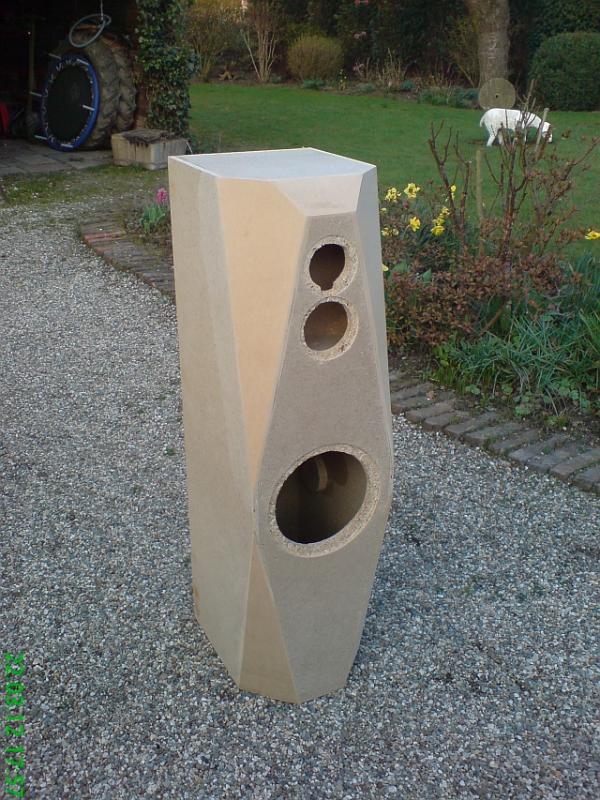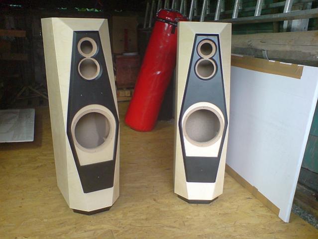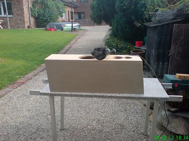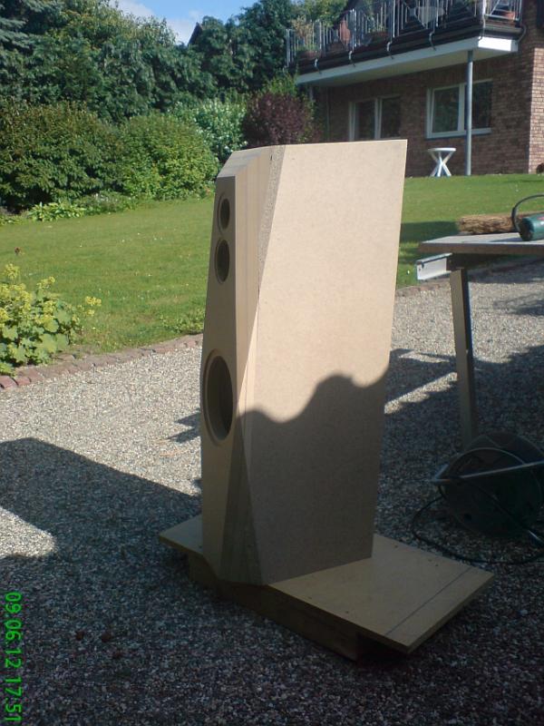 Dann hab ich das richtige Gehäuse gebaut mit leicht veränderter Front, da ich auch einen Bespannrahmen haben wollte.