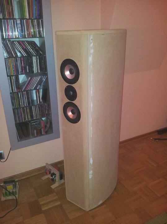 Es ist vollbracht... sie stehen fertig Geschliffen da... Die Bilder spiegeln nicht annärend wieder wie gewaltig und vorallem Elegant sie wirken. Das Gewicht ist ohne Seitenrahmen Systeme etc... Kabel werden 10mm² werden ich denke ein gesamtgewicht von 80 Kg ist angepeilt.... Die Waage spricht für sich wie Massiv dieser Lautsprecher ist. Beim Klopftest zur Vox 252 nach Bauplan muss ich lachen wie Blechern und Vibrationsstark es klingt. Bei der 301er klingt es eher wie auf einem Stein.