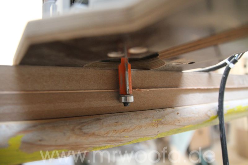 Zuerst gings dabei den Boden und den Deckel zuzuschneiden bzw. die wichtigen Sachen die grade werden müssen schön mit Oberfräse und Bündigfräser