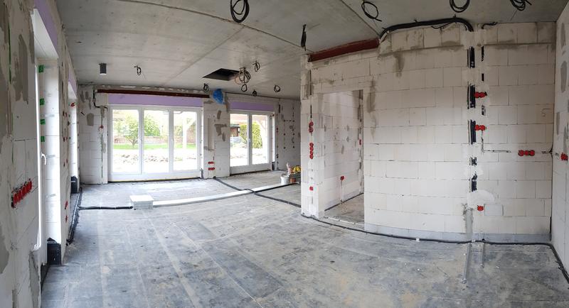 Der Rohbau wächst und es ist schön zu sehen wie es voran geht. Ich habe auch schon einiges gemacht und diverse Kabel eingezogen usw.