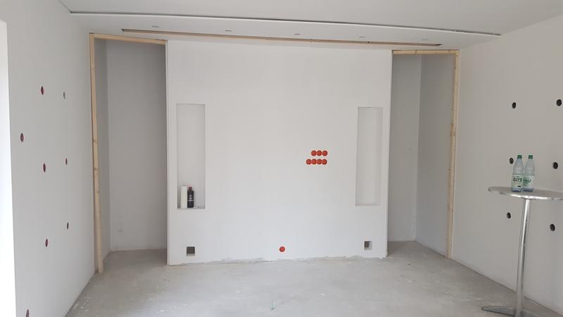 Die Bilder sind schon paar tage her, aber hab keine neueren mit den Wandaussparungen der und Beamer Öffnung.